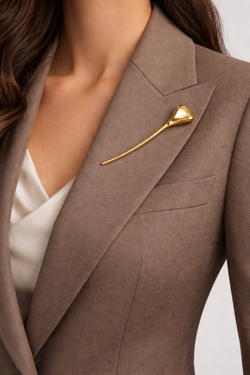 The Amani Brooch is a refined expression of quiet elegance. Designed with a sleek elongated silhouette and a smooth, high polish finish, it rests effortlessly along the lapel with a modern, sculptural presence. Lightweight and versatile, it adds a subtle yet powerful touch of grace to any look.