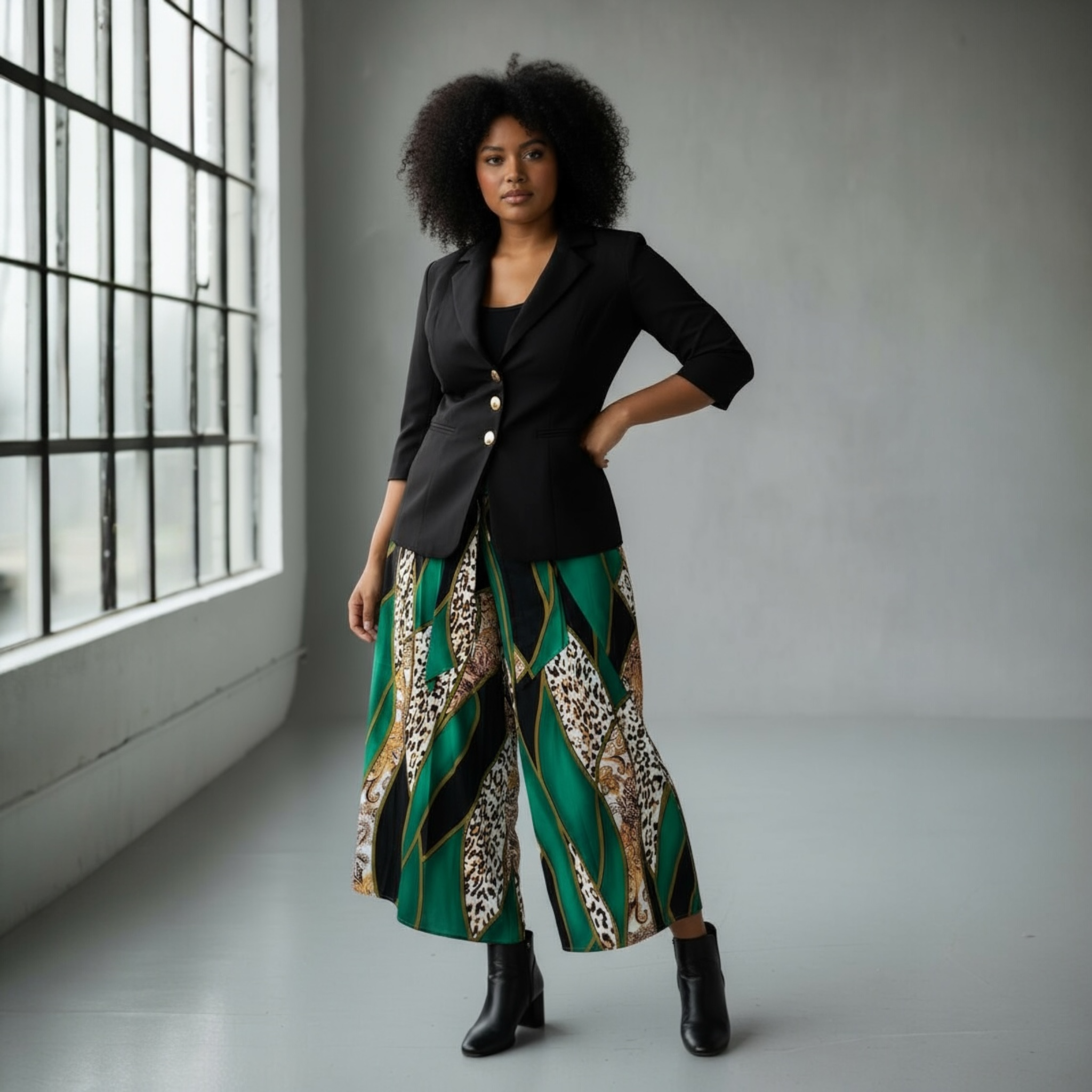 Introducing the Cheetah Trend, a unique and stylish pant that boasts a balance of geometric shapes and cheetah print. Featuring a side zipper and attached belt, this flowy pant offers effortless movement with every step. Elevate your wardrobe with this one-of-a-kind piece.