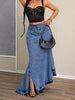High-Waist Asymmetrical Slit Denim Maxi Mermaid Skirt