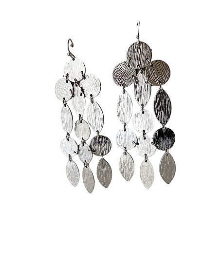Our MJ silver dangle chandelier earrings are the perfect mix of elegance and edge. Featuring delicate silver strands that cascade down, these earrings will add a touch of glamour to any outfit. Elevate your style and make a statement with these stunning earrings.
