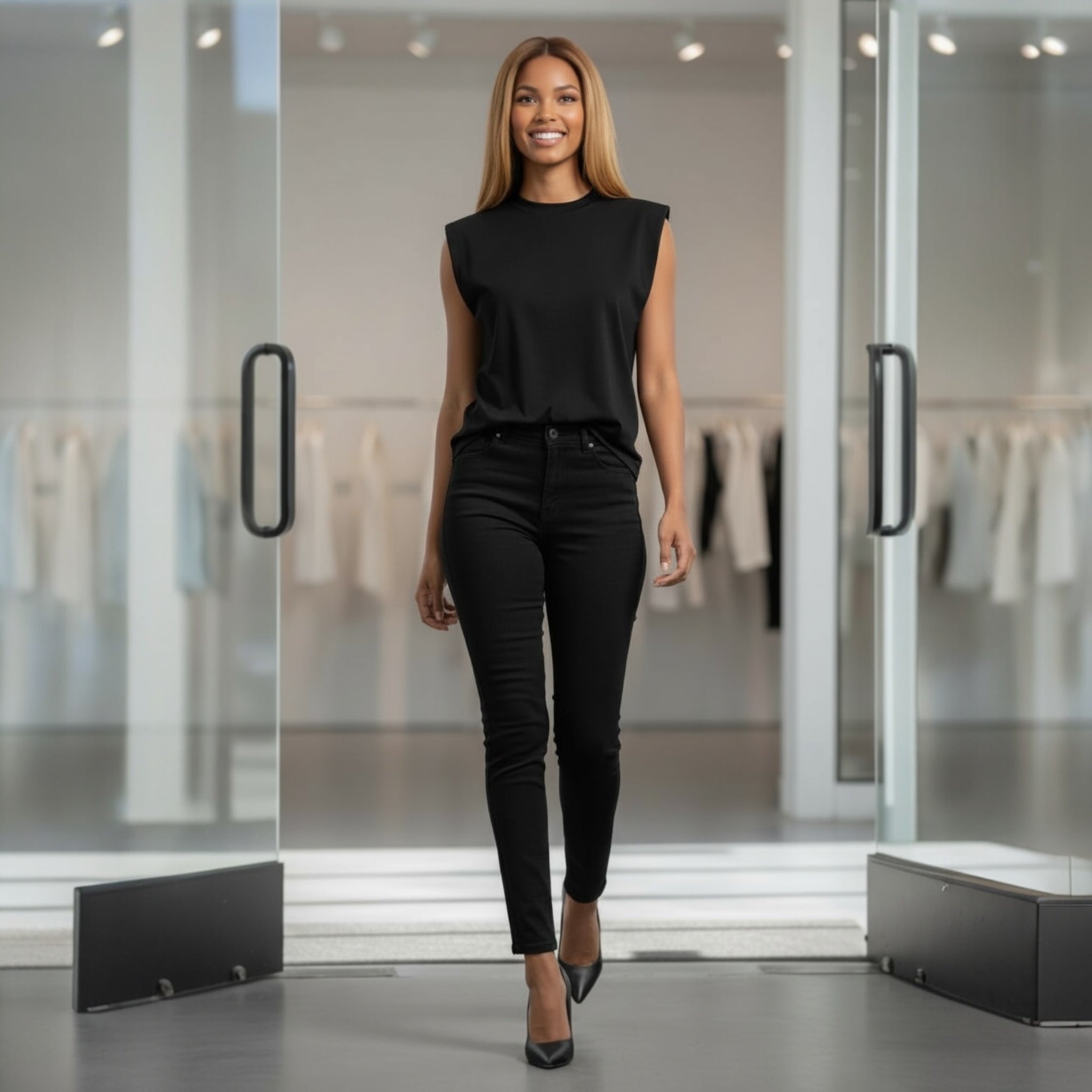 Own the room with this audacious cotton muscle tee, engineered with structured shoulder pads that command presence. Cut-off sleeves deliver raw, unapologetic style while soft cotton keeps you grounded in comfort. Shift from power moves by day to magnetic evenings—layer it fearlessly or let it stand alone. The pads add architectural drama to your silhouette, making every transition feel intentional. This is versatility with attitude.