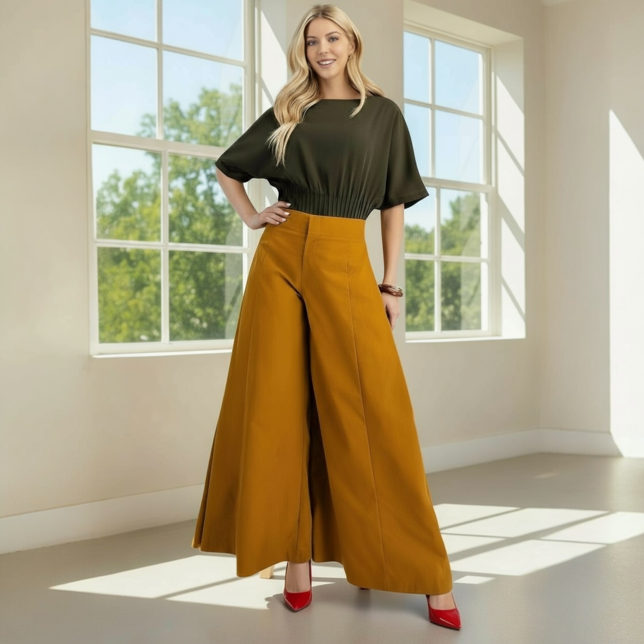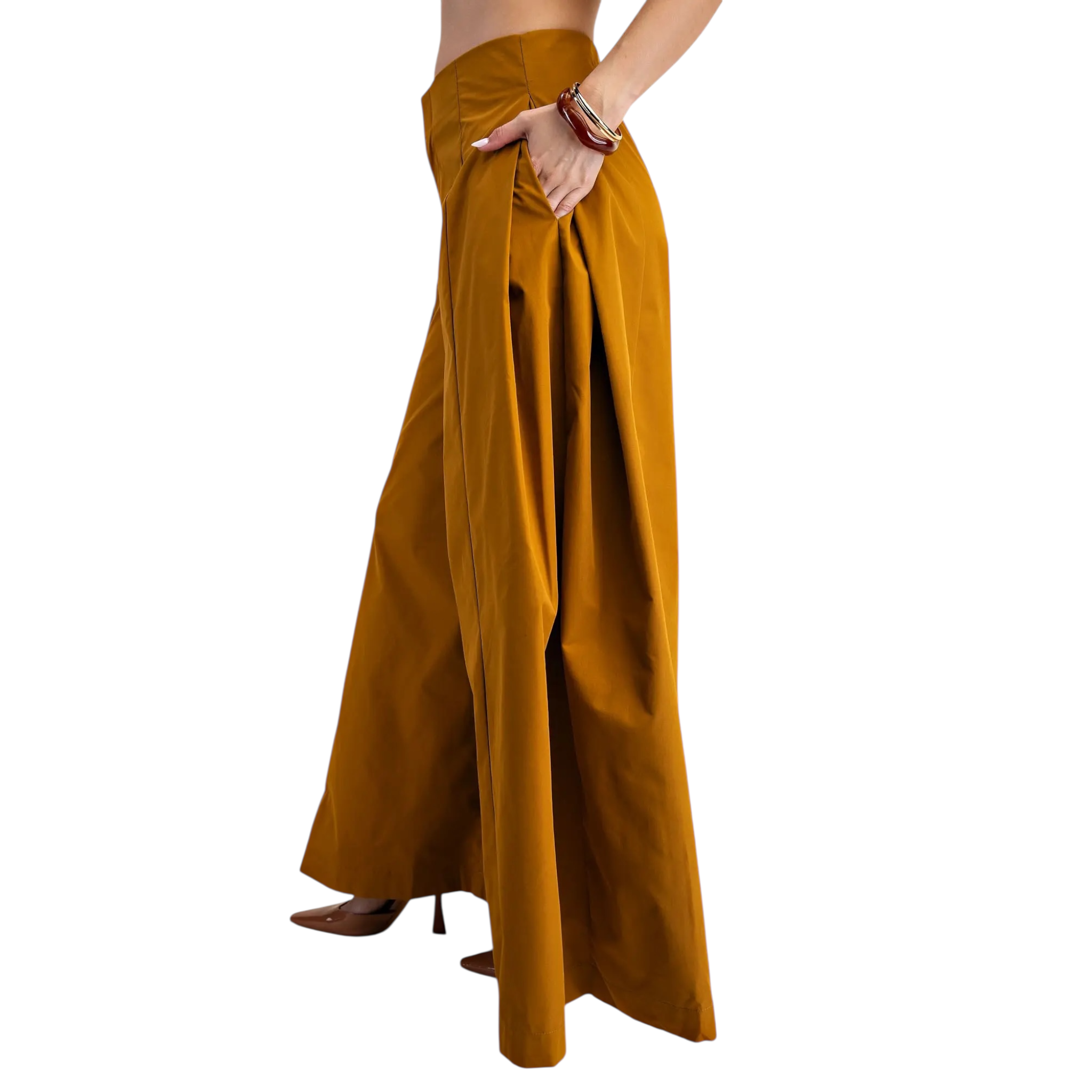 Step into bold style with the Sashay mustard wide-legged pants. Designed for those who dare to stand out, these pants feature flowing pleats that conceal a hidden pocket—perfect for keeping essentials close without sacrificing sleekness. Embrace comfort and mystery in a statement piece that moves with confidence and flair. *Shoes and shirt not sold