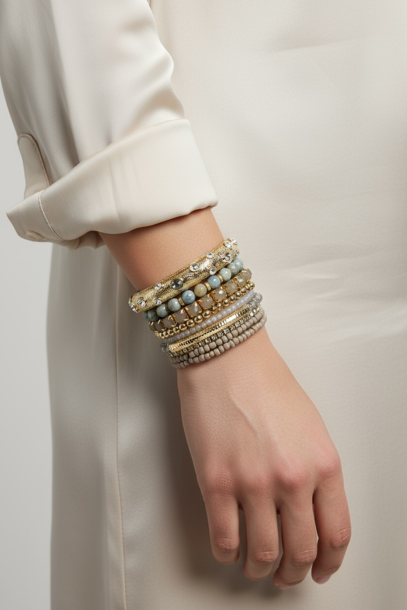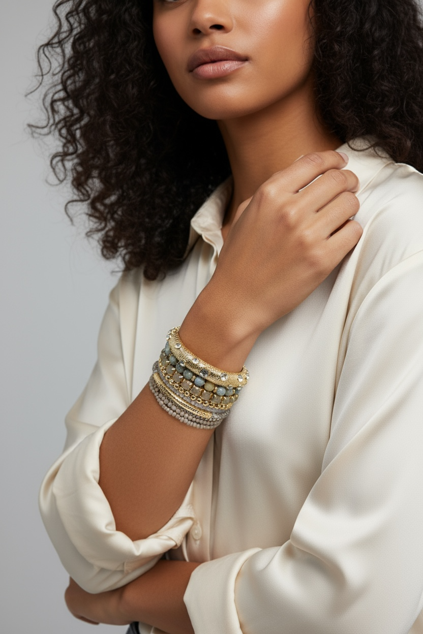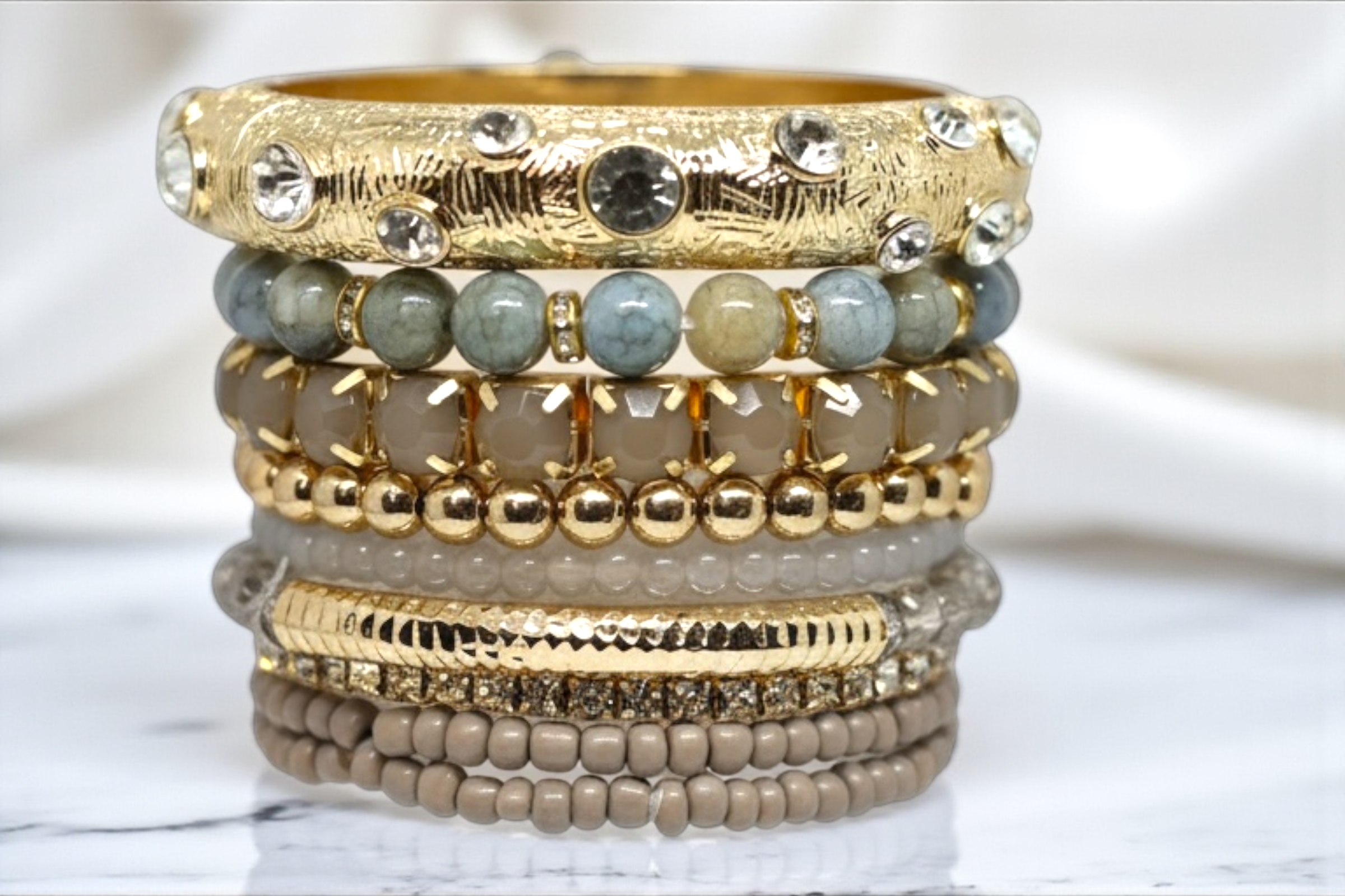 Discover the perfect accessory to elevate any outfit with our stylish multicolored gold and gray bangles. With a variety of colors, these bangles add a touch of versatility and elegance to your wardrobe. Made with quality materials, these bangles are the perfect combination of style and durability.