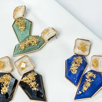 Vintage vibes! Elle's drop earrings flaunt glistening gold accents set in black and white stone for a look of old-world glamour.